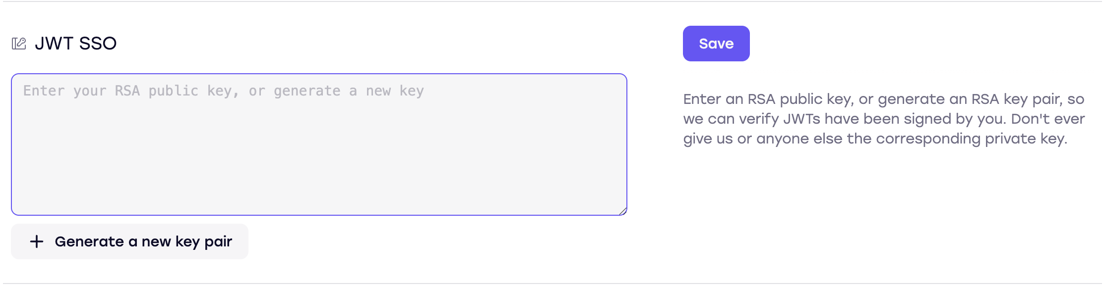 We have enabled a way for account Administrators to do this within your Cobrowse.io dashboard under Settings -> Integrations -> JWT SSO by clicking the "+ Generate new key pair" button.